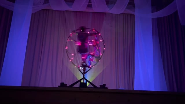 Дуэт - цирковое исполнение гимнасток на крутящейся сфере, с лазерами, и другими спецэффектами.